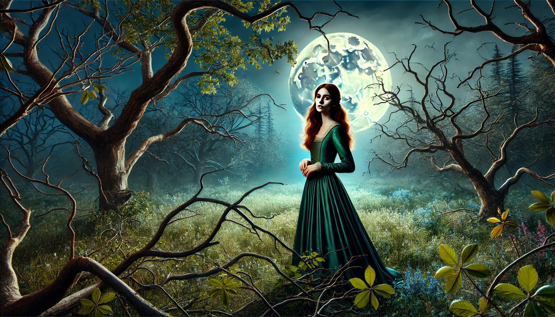 Una vez que las dríadas le permiten el paso a Helen al bosque oscuro, no pasó mucho tiempo antes de que comenzara a notar que la vegetación cambiaba de color, de un verde claro a un verde más oscuro. Los árboles pasaron de estar en buen estado a verse decadentes, viejos, maltrechos y retorcidos.