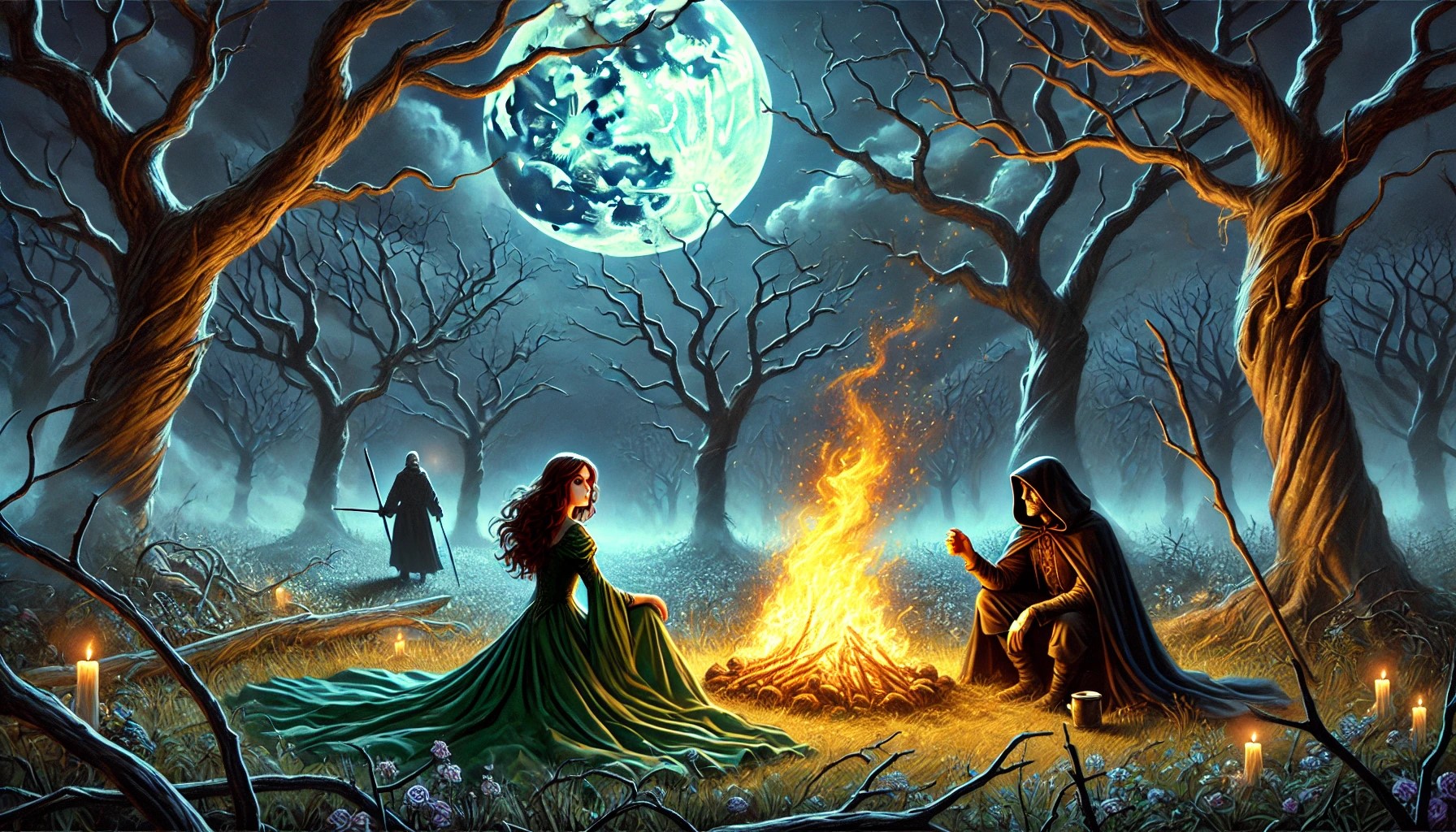 Mientras Helen sigue su viaje hacia el bosque oscuro, Zarathos se encuentra en trance y muy cansado, reteniendo la vida de Reynard por medio de un ritual ancestral. Al caer la noche, Nill, curioso, llega a ese lugar. No encuentra a Helen, y uno de sus compañeros le pone al tanto de lo sucedido. Nill decide quedarse allí para acompañar a Zarathos, comenzando a encender fogatas a una distancia prudente alrededor del mago, para brindarle calor en la noche y alejar a las fieras salvajes.