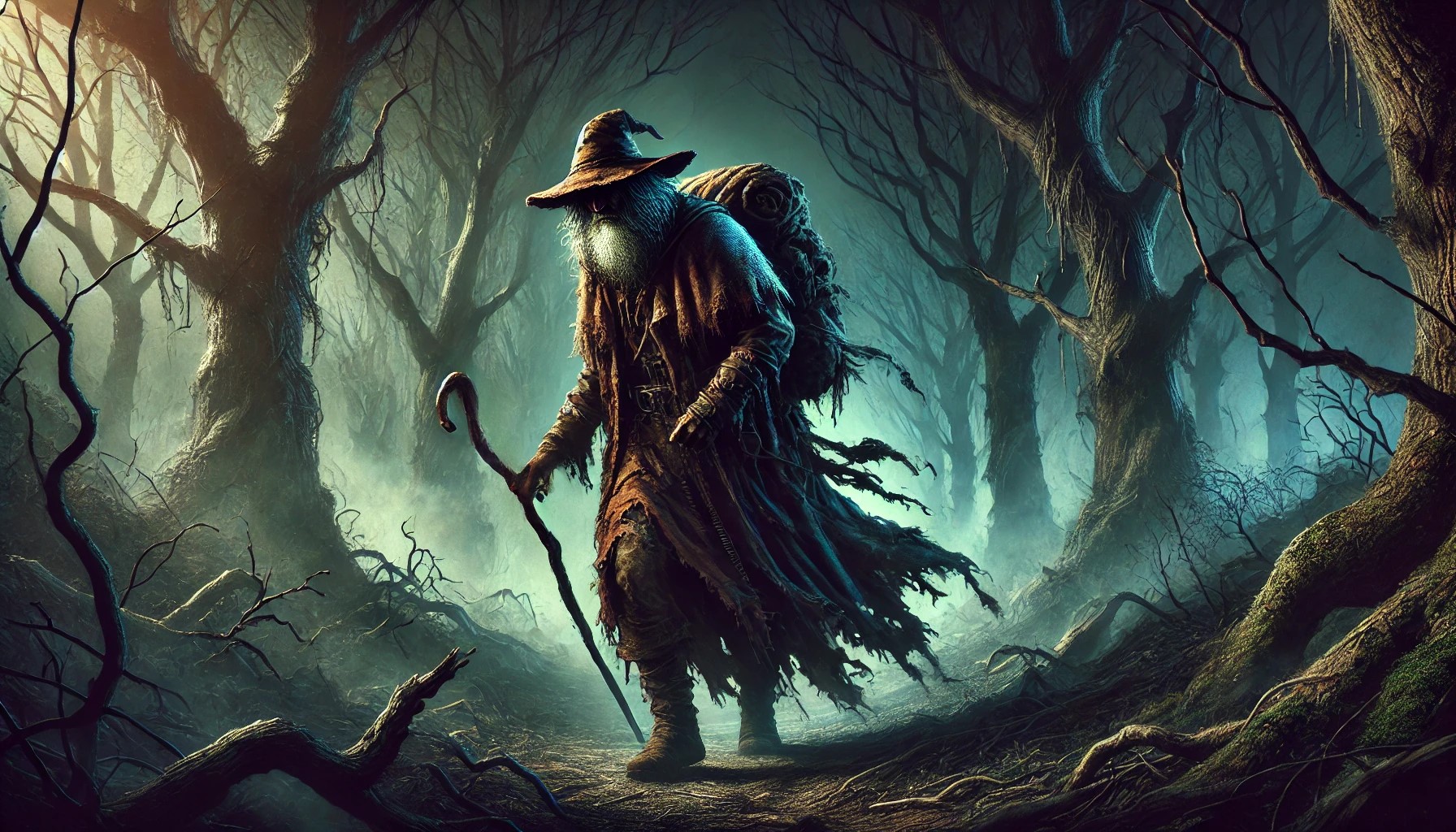 Efectivamente, Baltazar es un vagabundo errante del lugar. Fue hechizado hace unos años y está condenado a caminar hasta que muera en todo el bosque oscuro. Es intocable por fuerzas oscuras debido a que ya tiene dueño de su alma en aquel lugar.