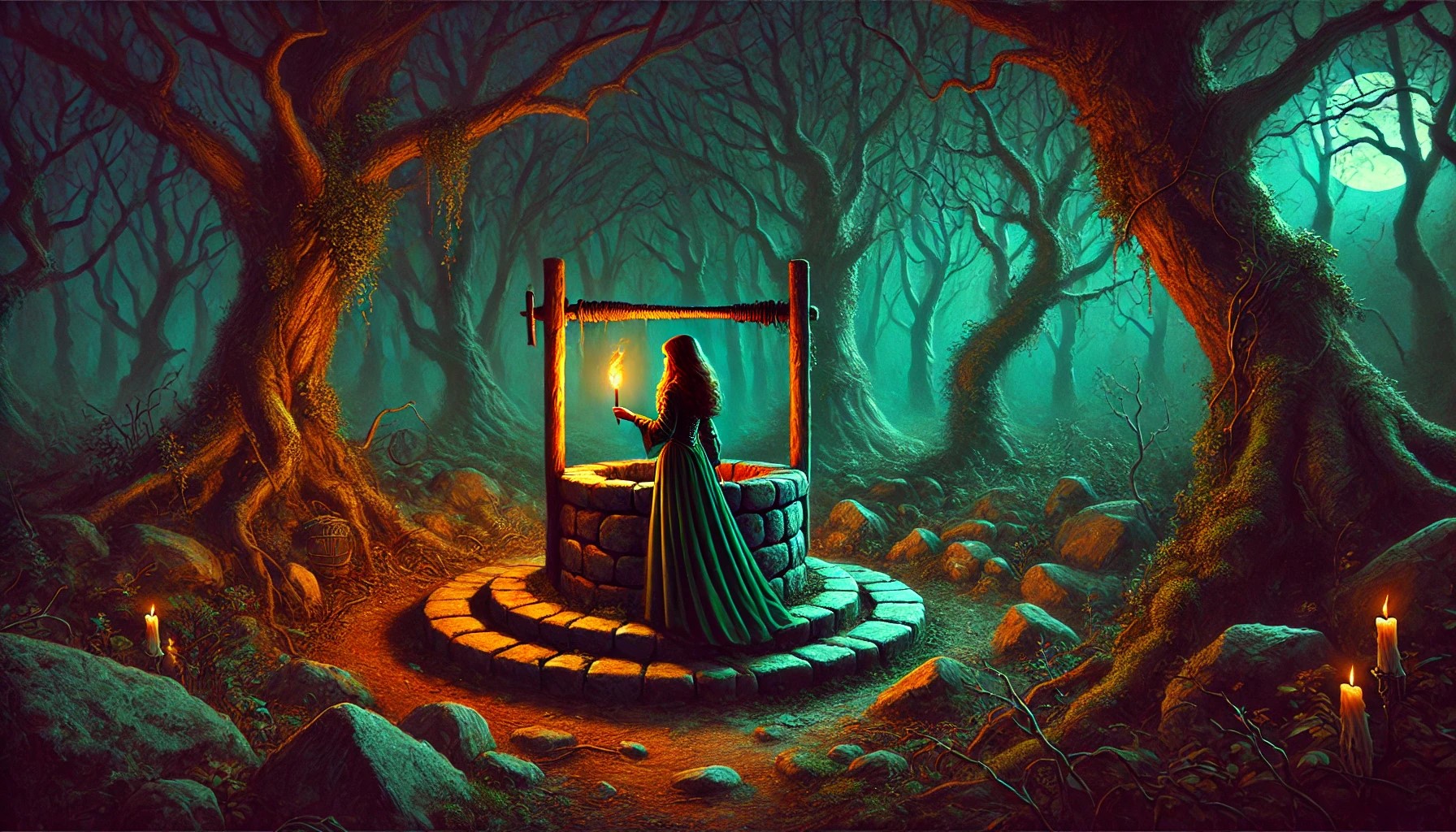 Helen inspecciona el lugar y, al volver al pozo, encuentra a una persona cubierta con capucha y capa negra, de pie frente al pozo.