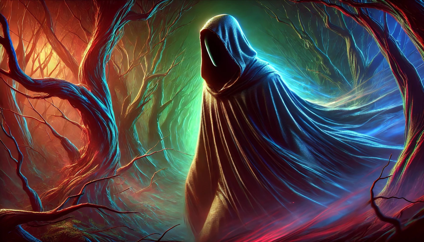 Las víctimas quedan hechizadas en un sueño profundo del que no despiertan, ya que ha capturado parte de su ser dentro de aquella capucha. Después de algunos días, mueren por falta de alimentos. El Hombre Sin Rostro procura estar cerca del pozo, que atrae a las personas, y está donde convergen los cuatro senderos del bosque oscuro. Se cree que arroja a sus víctimas al pozo.